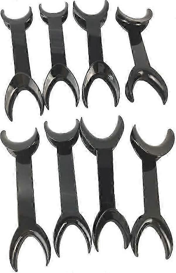 Perfect dental retractor tool of for dentist using. Easy and convenoent for you to use. Easy to keep mouth open and hands available for oral inspection. Ideal for extend use in dental office and teeth whitening salon. Eco- friendly plastic mouth opener which can help give you unobstructed view of oral cavity. Features: - Its Color: Black. - Its Material: Plastic. - Its Size S: About 145 x 45 x 20 mm. - Its Size L: About 167 x 55 x 24 mm. Package Including: 8 x Retractor Openers
