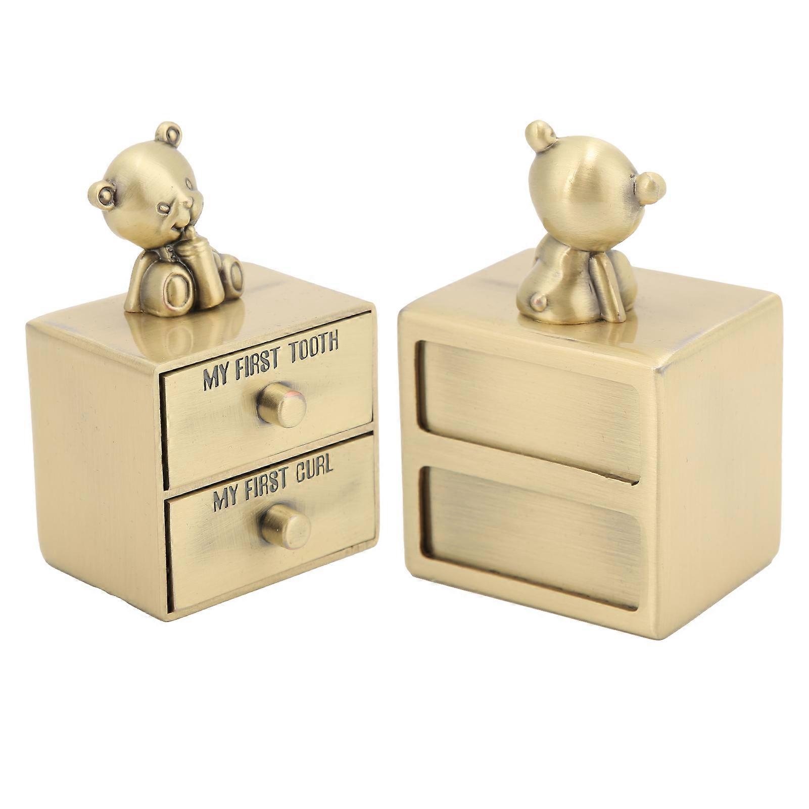 Tooth Box Metal Cute BearShape Storage Case with 2 Drawers for Children Growth Memorial Gift Jewelry Collection(Green Patina )