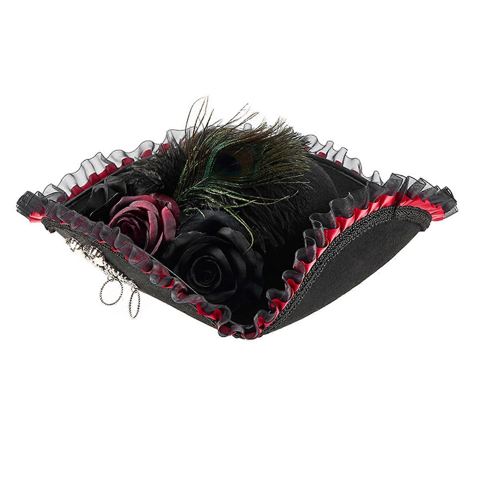 Theater Performances Pirate Headwear With Lace Trim And Feathered Flower Design For Historical Theme Party Stage Show Black red edge