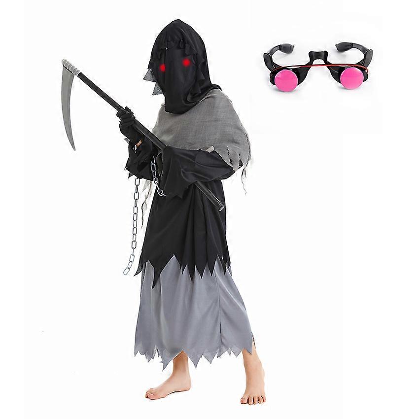 Grim Reaper Costumes LED Luminous Eyes Scythe Party Cosplay Anime Medieval Halloween Costume for Kid Witcher Dress Carnival Prop