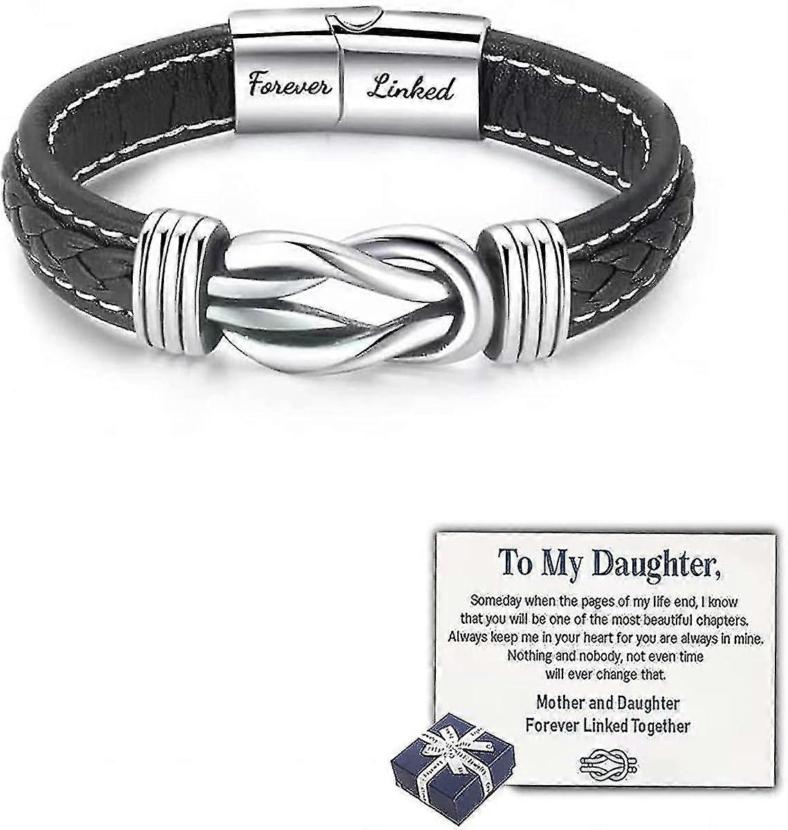 Mother And Daughter Forever Linked Together Braided Leather Bracelet Women Inspirational Wristband Women's Stainless Braided Leather Bracelet Bangle W