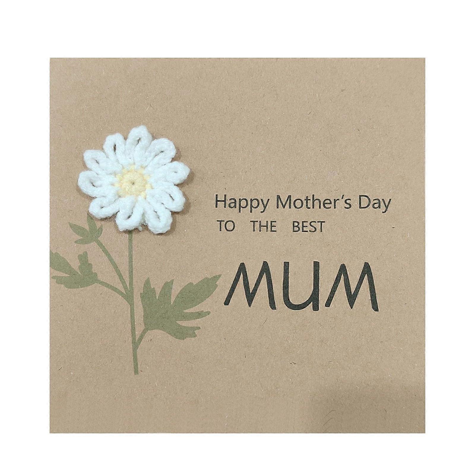 Mother's Day Gift Card Handmade Hook Weaving Flower Woollen Embroidered Flowers White Hard Kraft Paper Card One Size