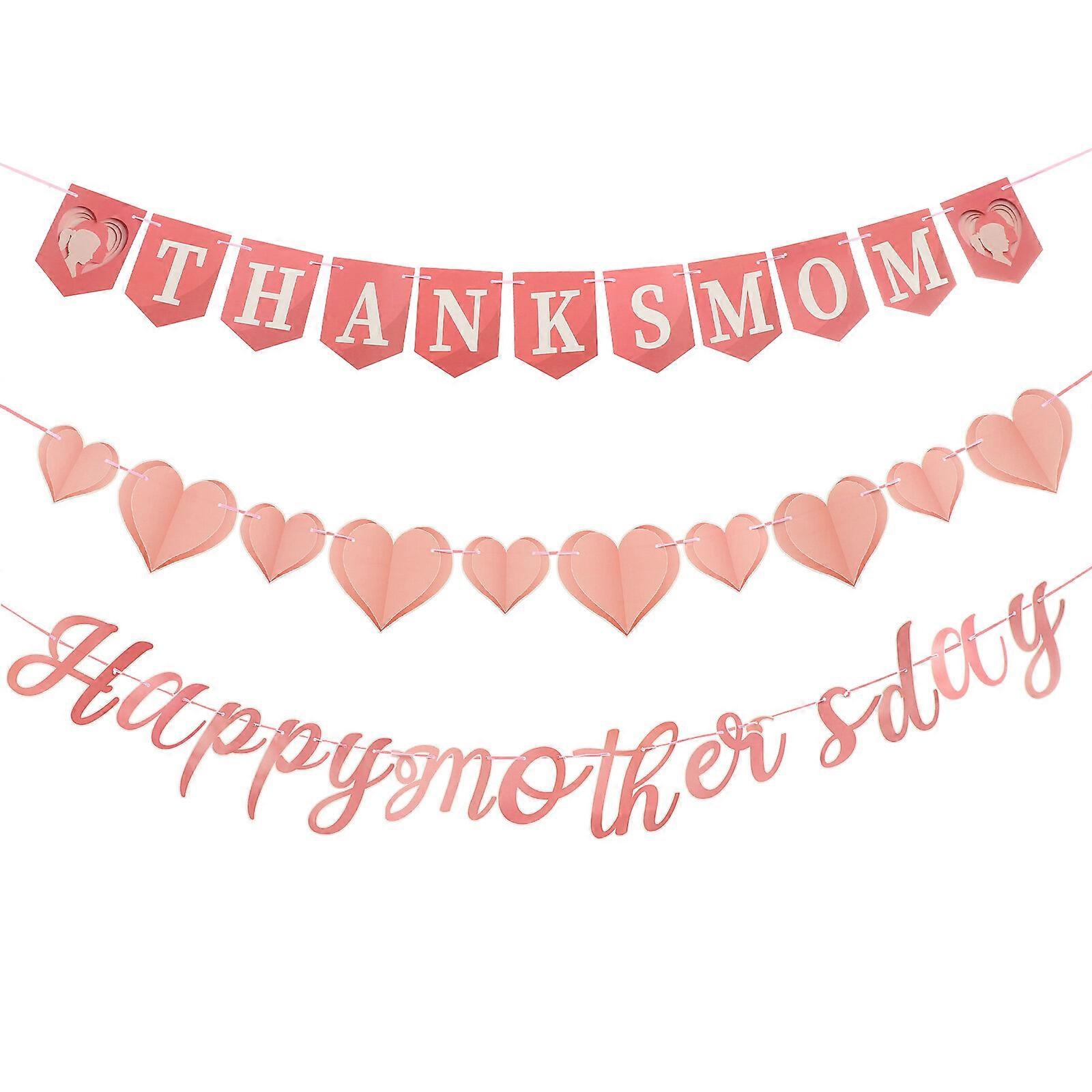 Description Are you looking for some decorations for your party?The Mother's Day banner set is made of superior material which is safe and durable. Suitable for wall, door decoration. It can also be used as photo backdrops. Perfect party supplies and decorations for adding atmosphere to theMother's Dayparty. Compact and exquisite, you can store them easily for next use. Features -Color:Pink -Material:Paper -Size:19.89X17.40X0.10cm/7.82X6.84X0.04in(letter banner) -Size:19.68X17.40X0.10cm/7.73X6.84X0.04in( heart banner) -Size:17.00X13.00X0.10cm/6.68X5.11X0.04in(thanksmom banner) -The HappyMother's DayBanner is perfect forMother's Dayparty and can be used as a decoration to add a warm atmosphere. - TheMother's Daybanner is made of good paper materials, not easy to fade or tear, can be used for many times. - Not only as aMother's Dayparty celebration hanging flag, but also a greatMother's Dayparty photo prop. - This hanging banner is perfectly in line with the atmosphere ofMother's Day, to bring much more joys. - This banner is full of cheerful atmosphere, easy to use, perfect for indoorMother's Dayparty use.Packing list1 Set of Happy Mother's Day Banners