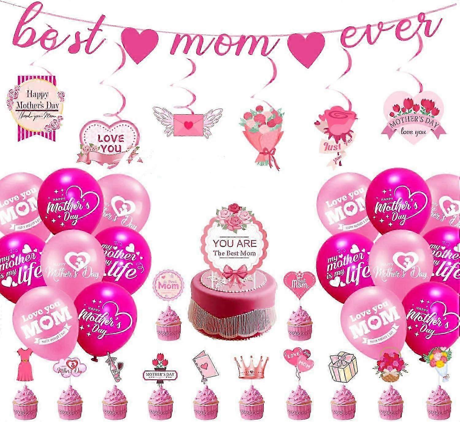 Mother's Day Party Decorations Supplies Happy Mothers Day Garland Banner, Hanging Swirls, Balloons, Cake Topper, Cupcake Toppers for Mother's Day Part