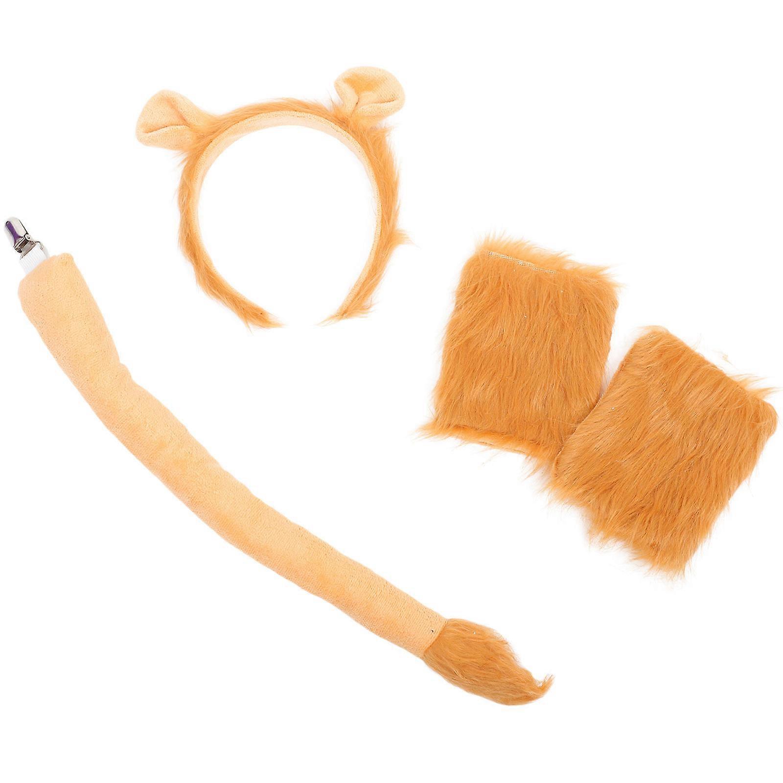 Furry Lion Ears And Tail Prop For Role Play In Carnival Style For Adults With Plush Material 1 Set
