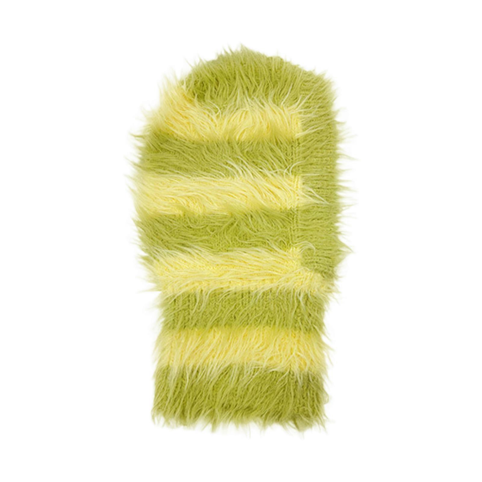 Furry Plush Hooded Hat Adult Unisex Balaclava Hat Fashion Stripe Beanie Hat Y2K Teens Girl Winter Autumn Warm Skull Hat mustard green
