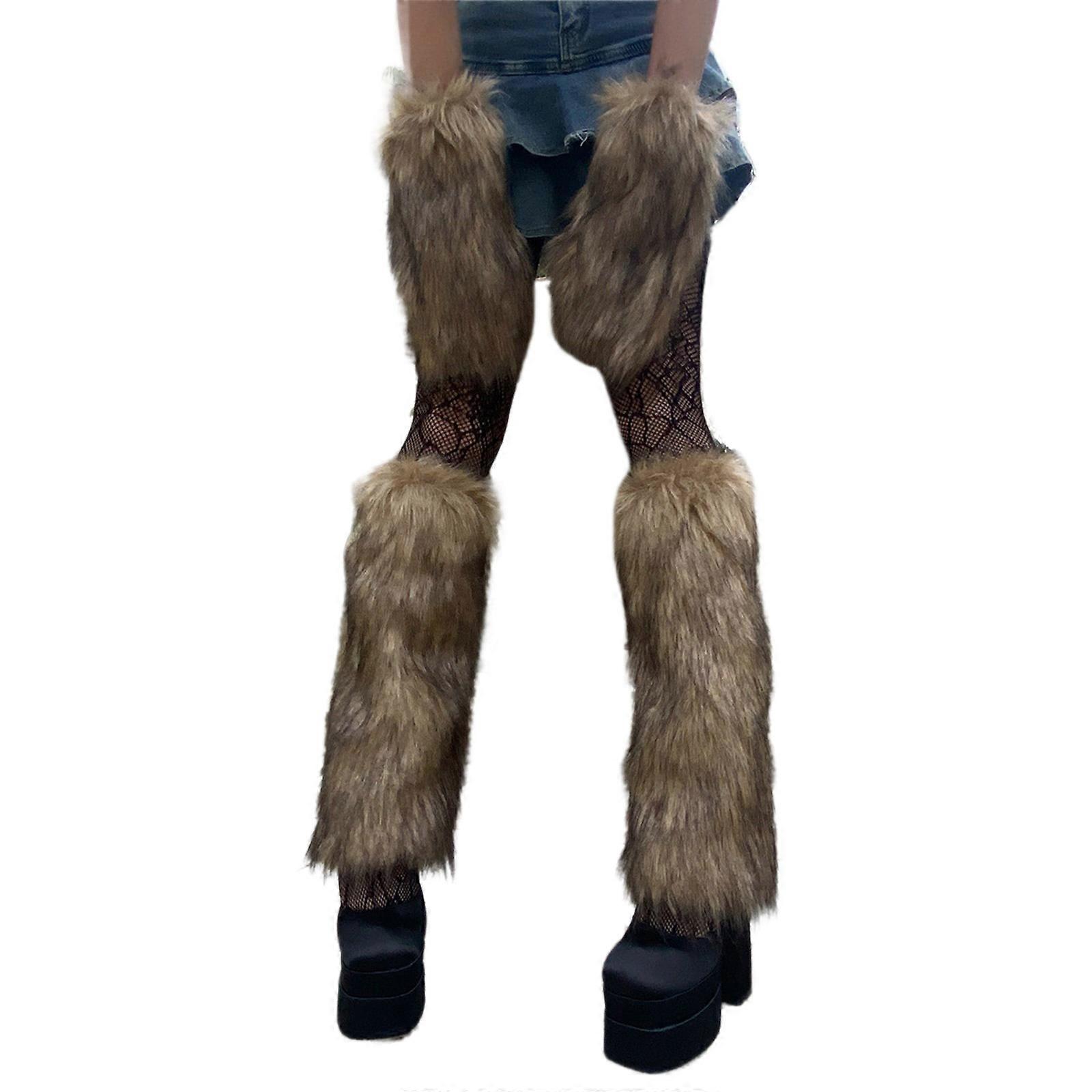 Furry Leg Warmers Y2K Boot Cuffs Cover Mesh Stockings Costume Girl Cosplay Wrist Gloves Japanese Y2K Lace Stockings Brown