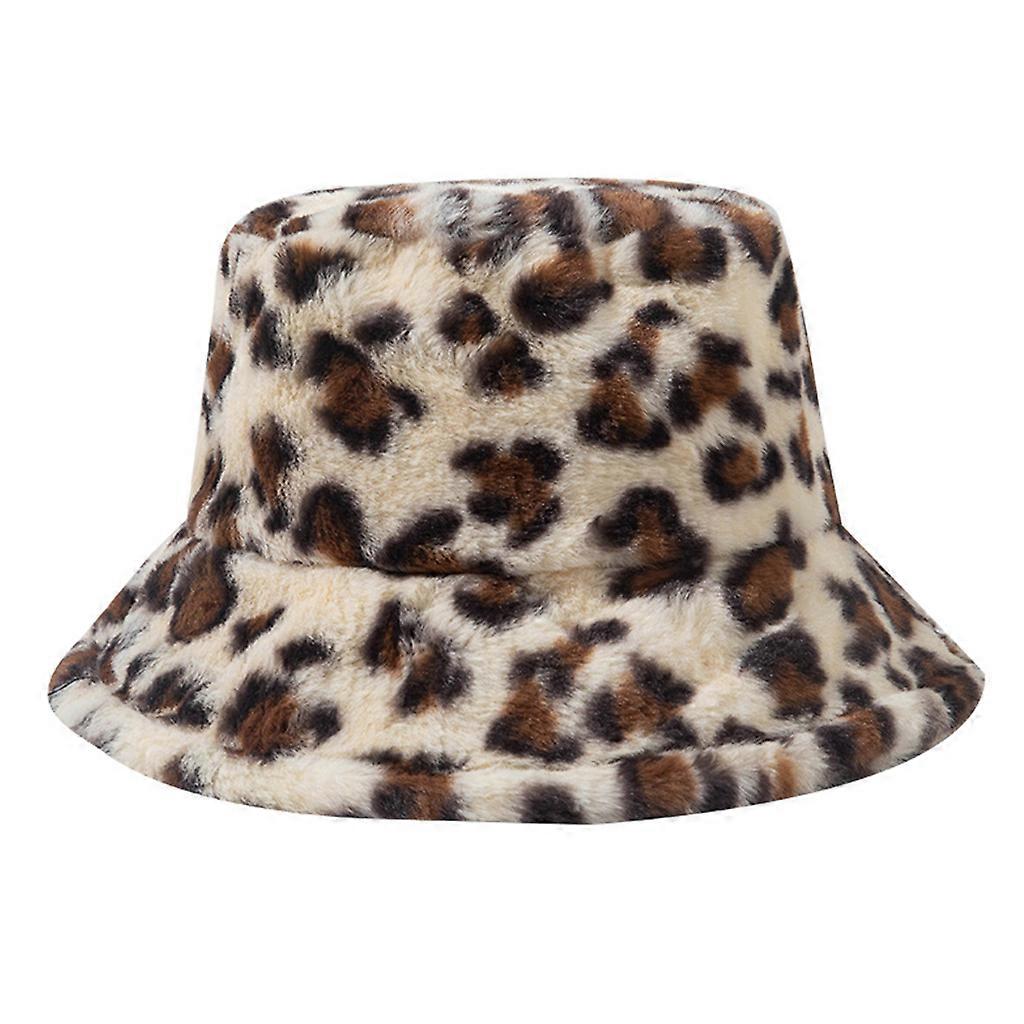 Bucket Hat with Cow Straps in Fur Made Fisherman Cap Winter Autumn Outdoor Panama for Men Women with Flat Top Beige