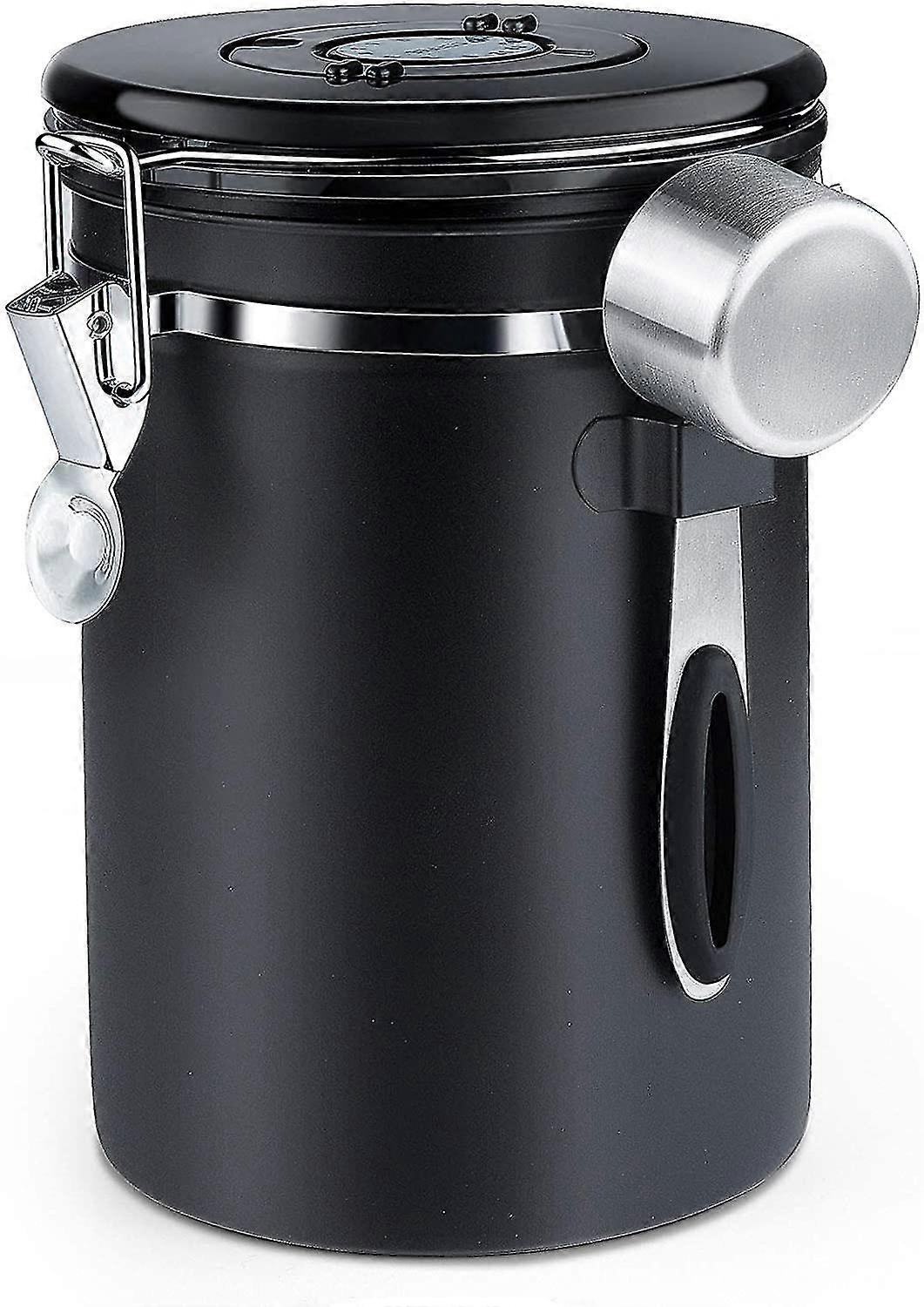 Airtight Coffee Canister - Coffee Bean Canister With Co2 Valve - With Measuring Spoon - 1.8l (black)