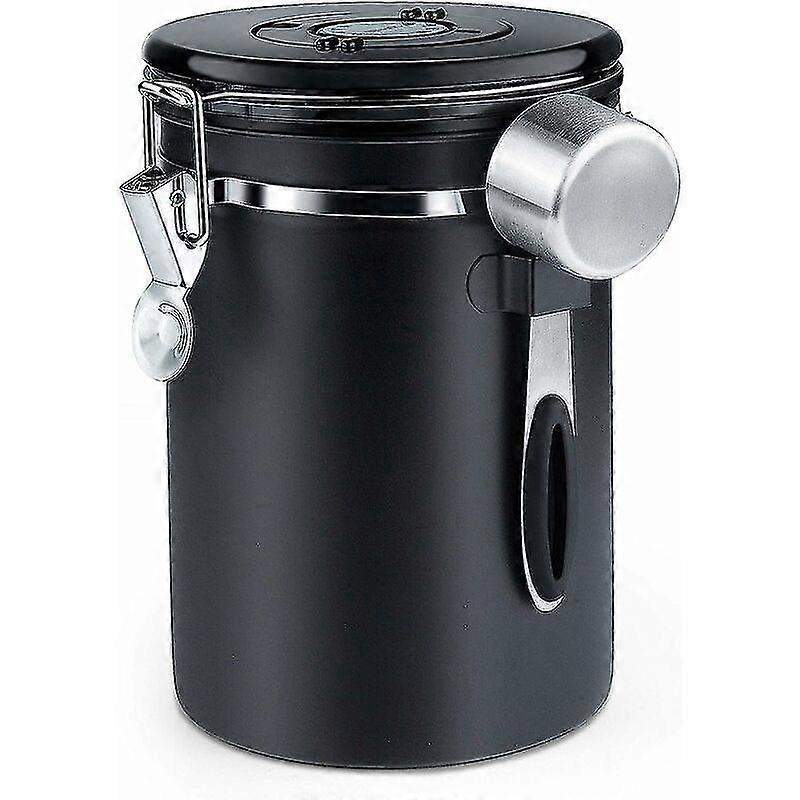 Airtight Coffee Can Coffee Bean Can With Co2 Valve And Measuring Spoon 1.8l (black)