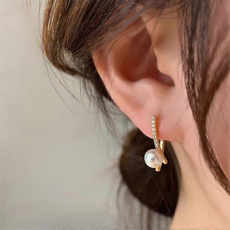 Temperament Ladies Light Luxury Pearl Double Layer Earrings Diamond Earrings, Specification:EH1456