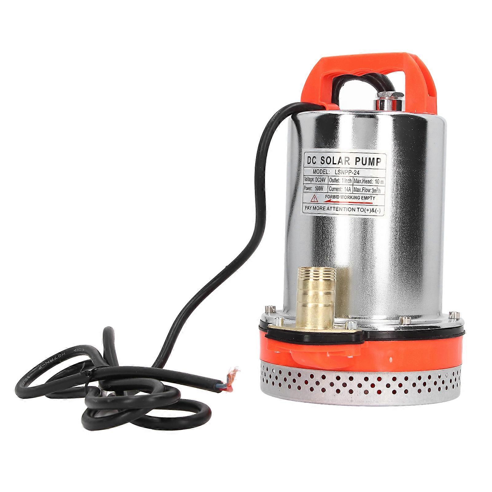Item Type: Submersible Pump Material: Stainless Steel Model: LSNPP-24 Rated Power: 500W Maximum Flowing: 3 m3/h Maximum Head: Approx.10m/32.8ft Power Supply Voltage: DC 24V Outlet Diameter: Approx. 25mm/1in Motor Speed: 3800r/minute Can use solar panels and batteries as power source to drive the pump