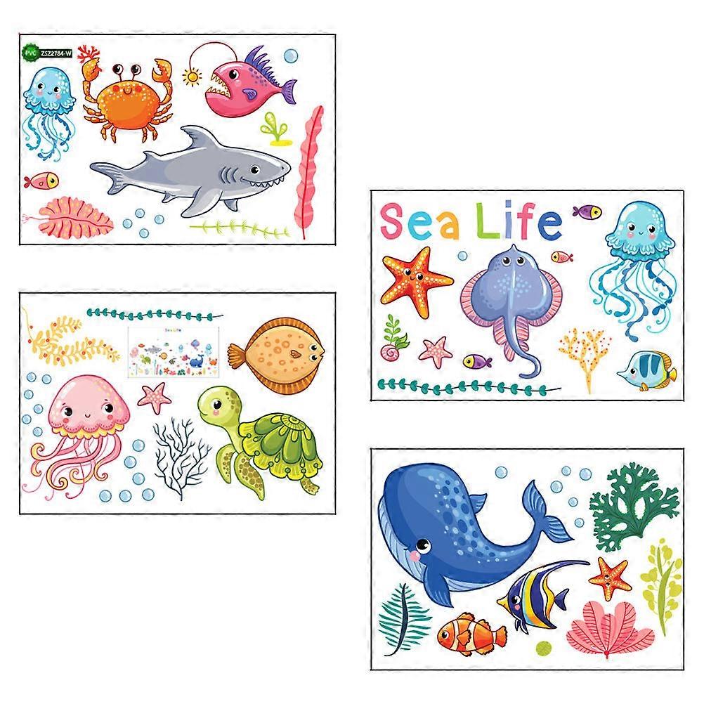 Underwater World Sticker Kids Room Wall Decor Indoor Kindergarten Pvc Durable Decorative 4Pcs