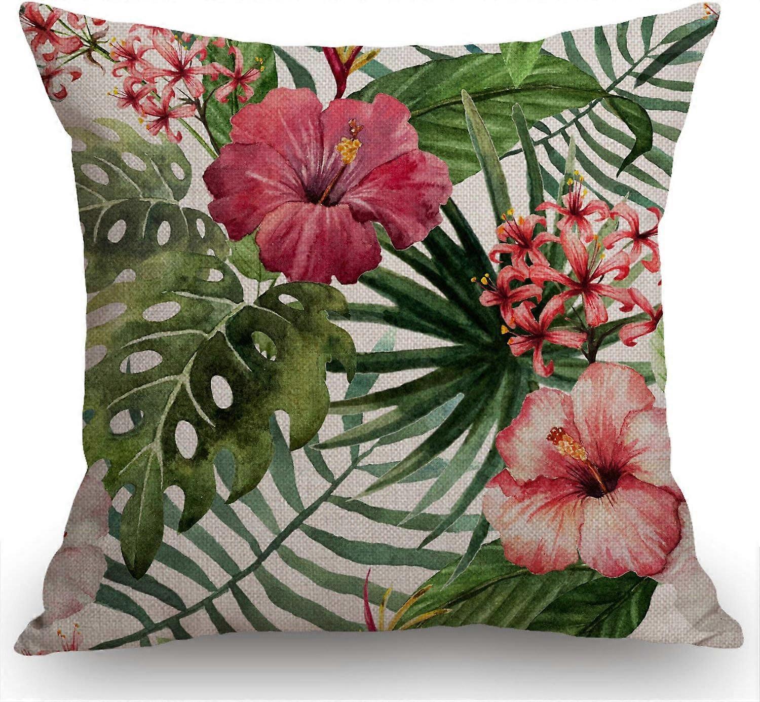 Watercolor Tropical Floral Pattern Cotton Burlap Linen Throw Pillow Case Cushion Cover Sofa Outdoor Decorative Square 18X18 Inches