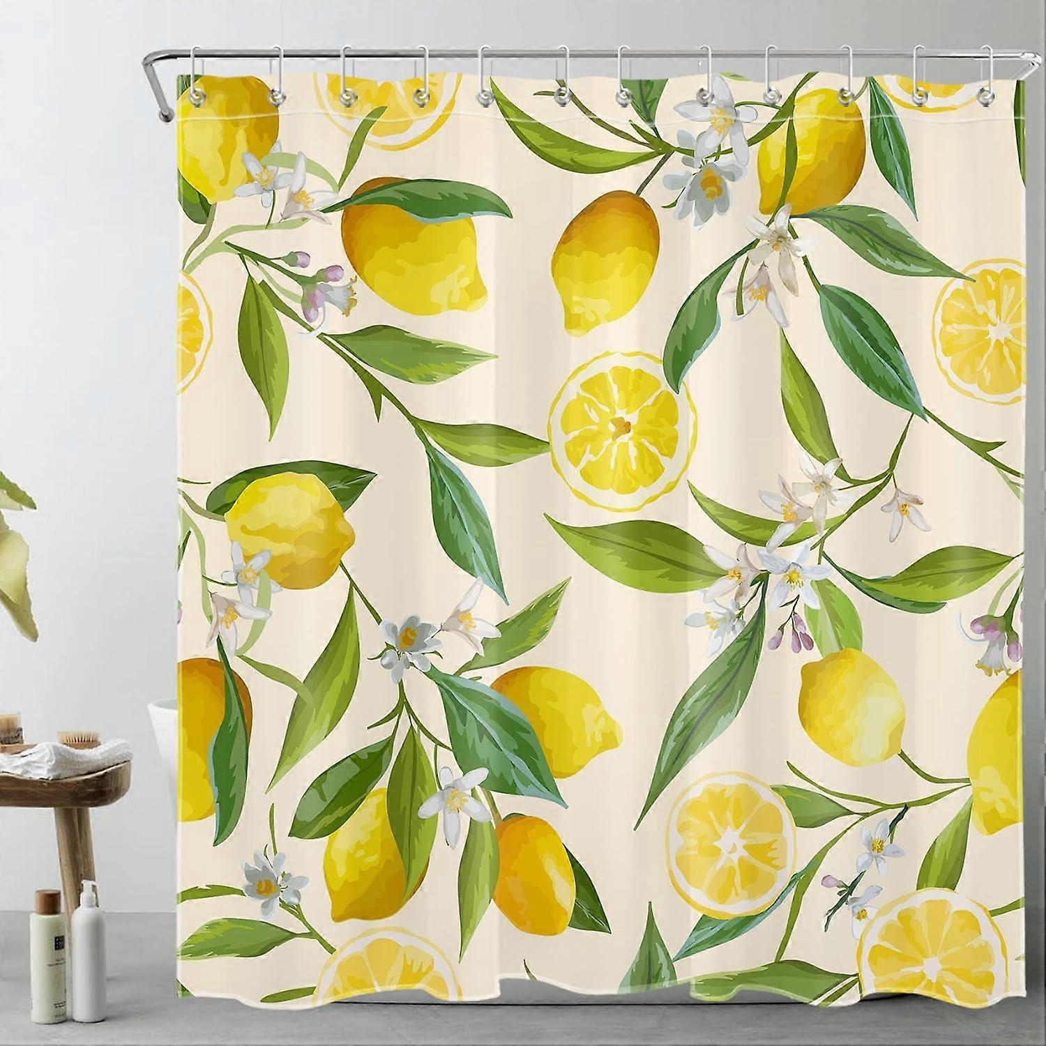 Watercolor Lemon Shower Curtain for Bathroom Yellow Fruit and Floral Plant on Beige Bathroom Shower Curtains with Hooks, Country Nature Bathroom Curta