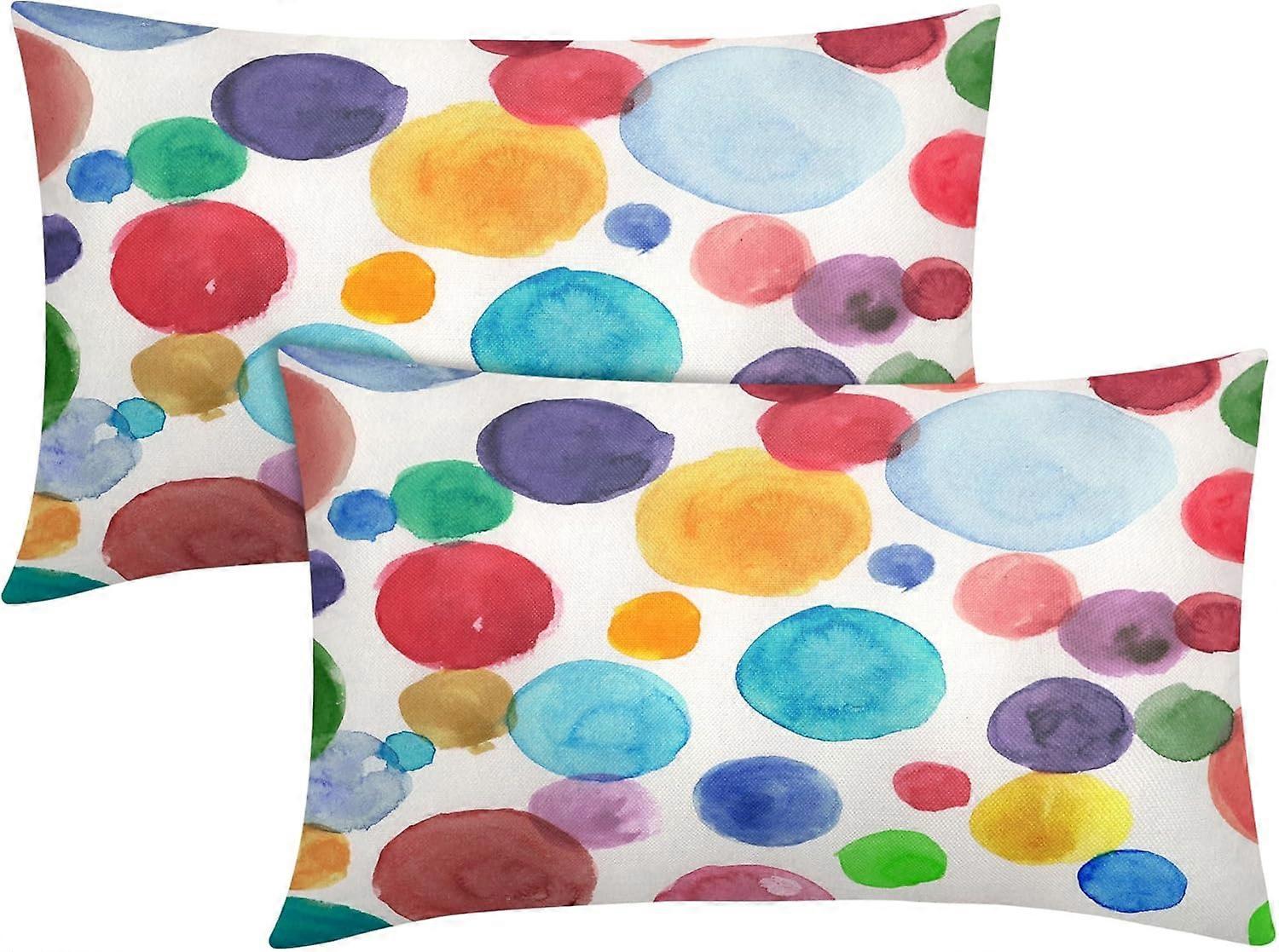 Watercolor Polka Dot Lumbar Pillow Covers 12X20 Inch Rainbow Colorful Circles Decorative Pillow Cases Modern Abstract Cotton Linen Throw Pillows Set o