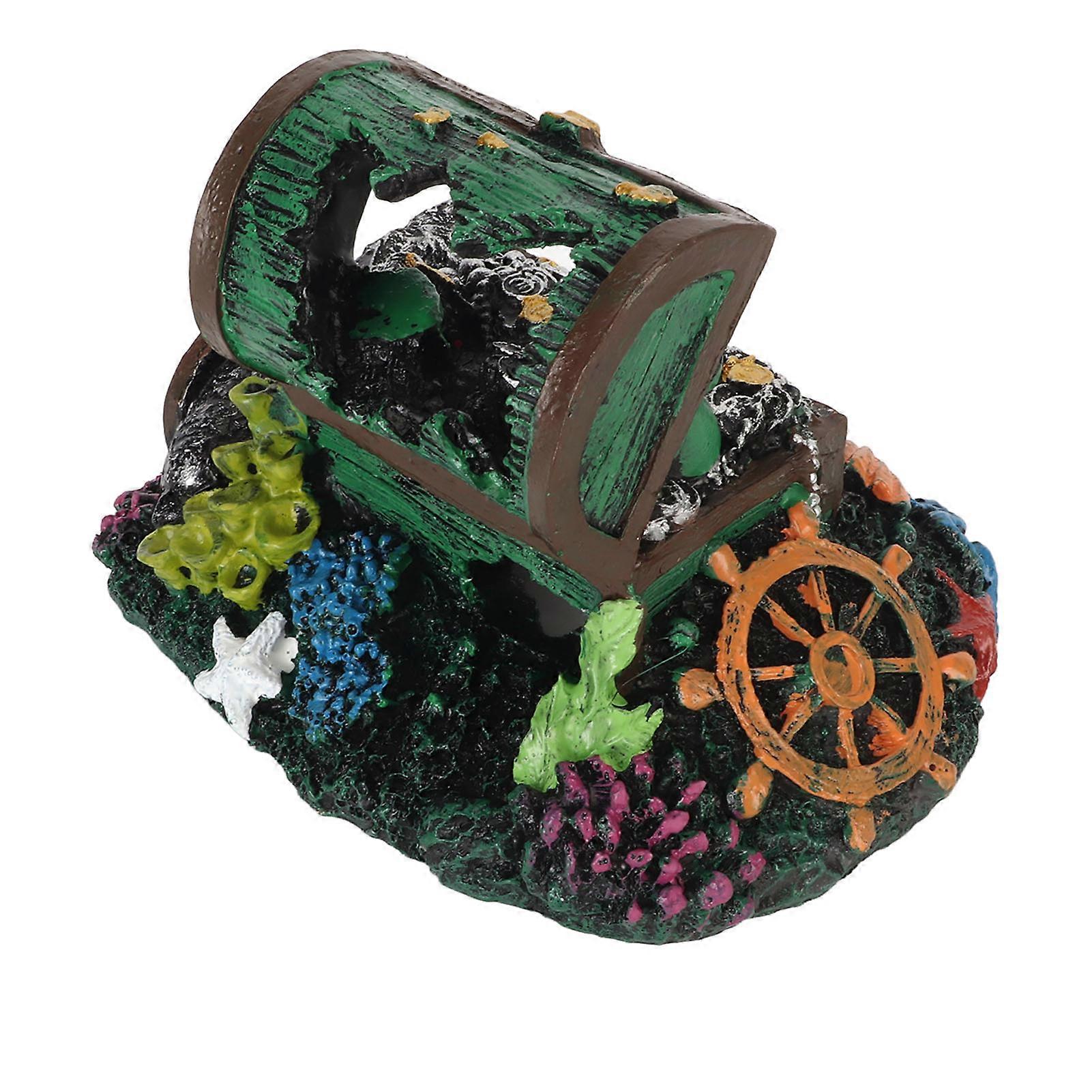 Aquarium Treasure Box Ornament Hideout Cave Lifelike Resin Jewelry Box Decoration for Freshwater Saltwater Tank Green