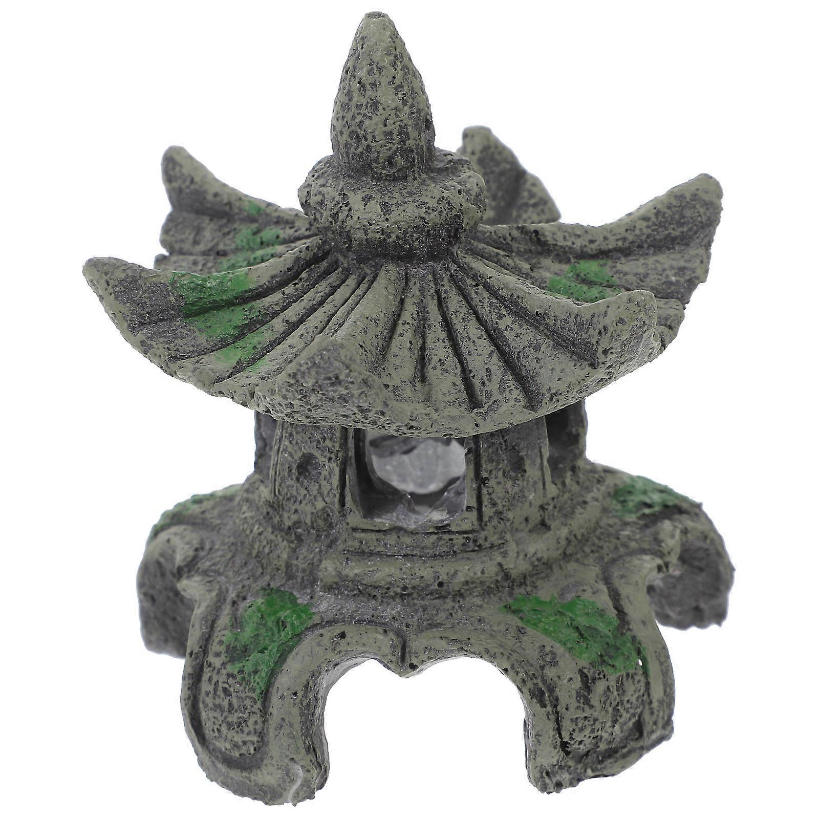 Durable Resin Pavilion Ornament for Aquarium Decoration Dark Grey Smooth Surface 6x4.5x8 Inches