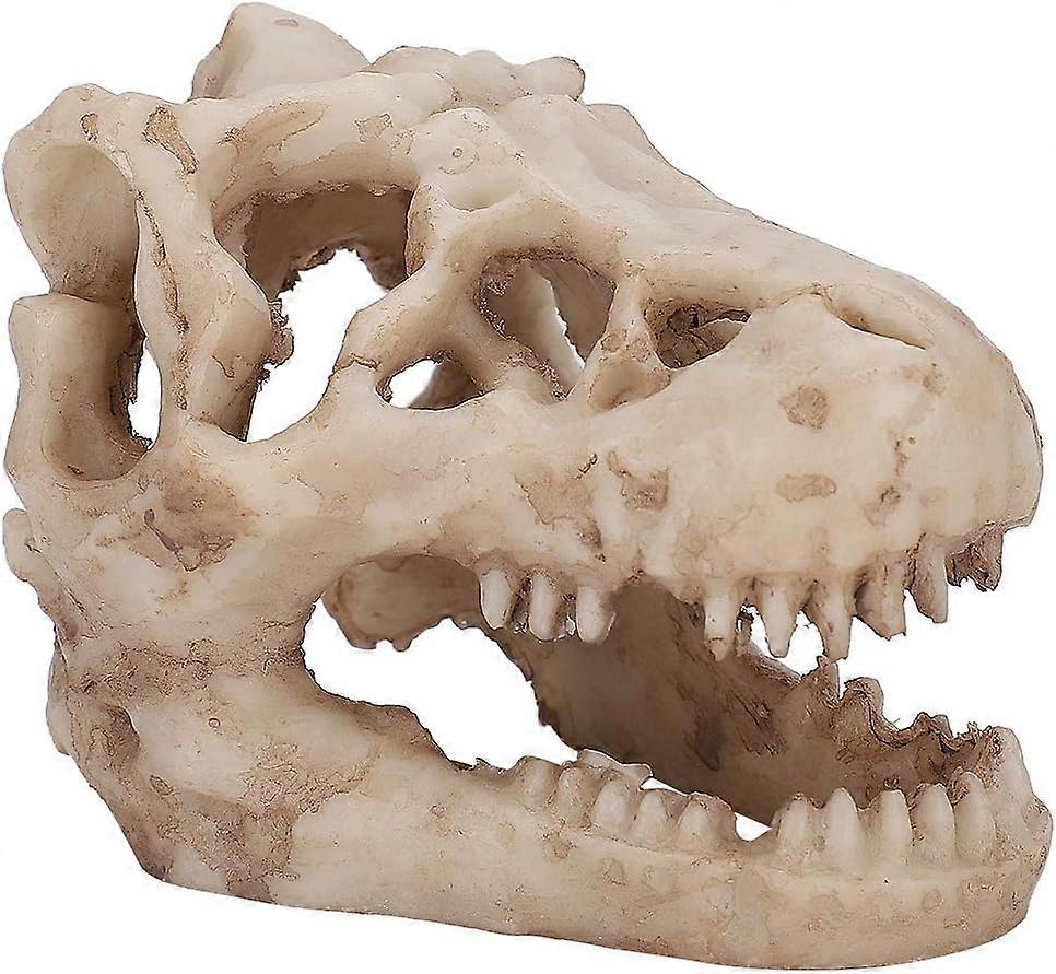 Aquarium Ornament, Resin Artificial Dinosaur Skull Shape Fish Tank Ornament Cave Decoration Hiding Climbing Shelter for Fish Tortoise