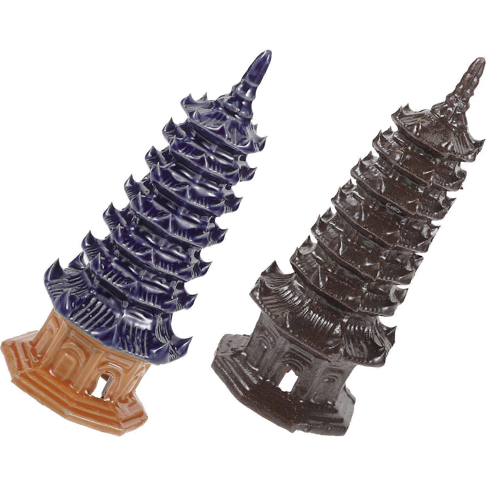 Aquarium Accessories Ceramic Fish Tank Decorations Vintage Miniature Tower 5.11x2.16x2.16in Landscape Decor 2Pcs