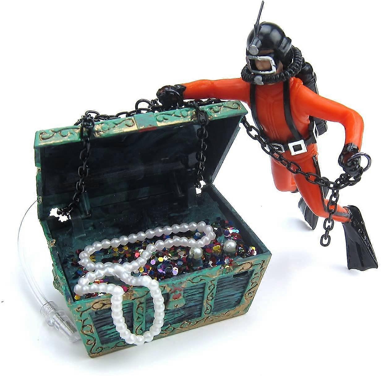 1.Made of premium resin and plastic, non-toxic and pollution-. Absolutely for the fish you beloved, either your freshwater fish or saltwater fish. 2.Decorates this treasure finder shape ornament underwater, adds more fun for your little fish and creates more mysterious factors to your home. 3.Vivid aquarium decoration is so lifelike that it seems like the real diver finds the treasure in your fish tank, suitable for decorating various fish tanks. 4.Great-looking ornament can be as a gift for lovers, family members or friends who have a fish tank, especially those who also like home decorating