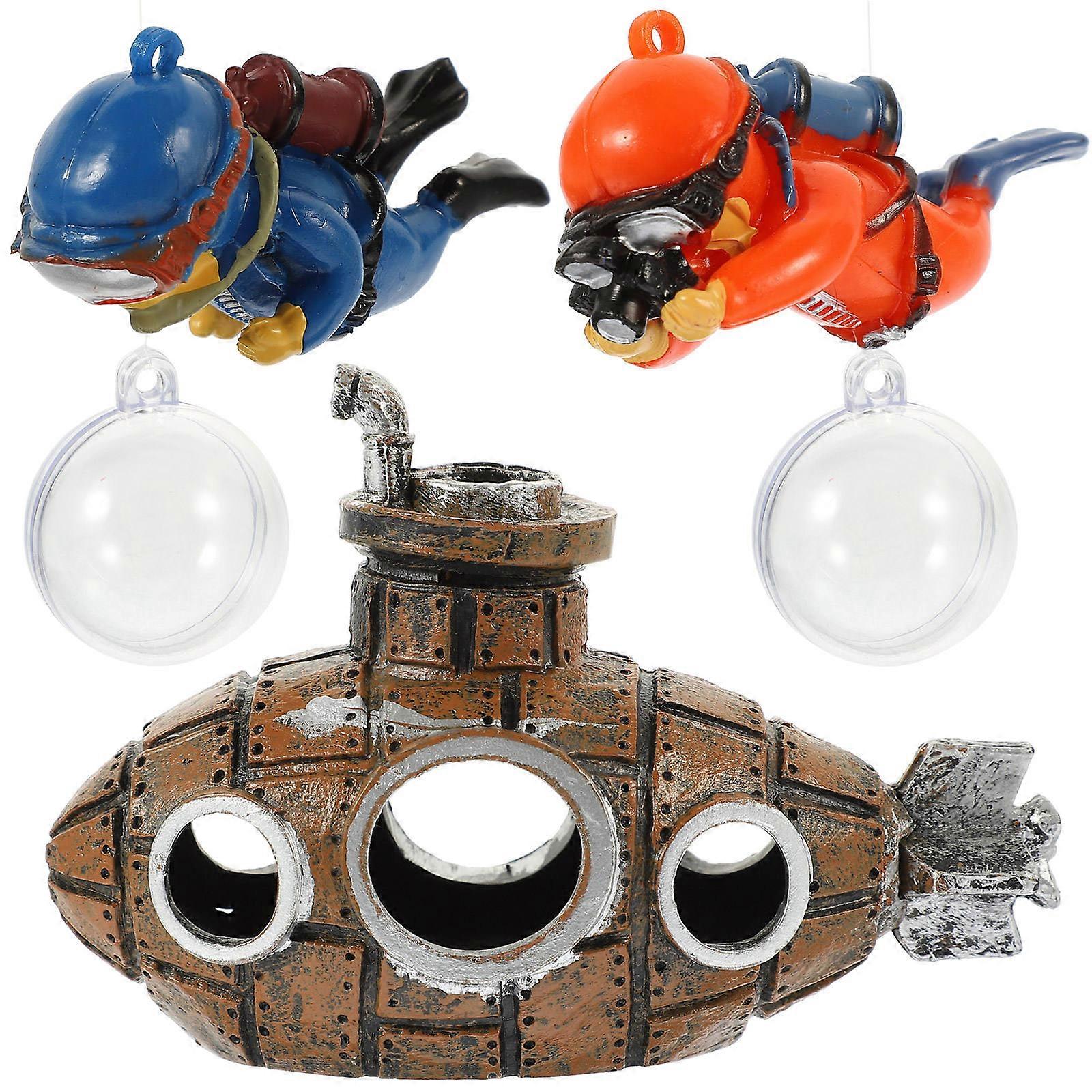 Aquarium Floating Decoration Resin Diver Shaped Ornament Pet Shelter 1Set