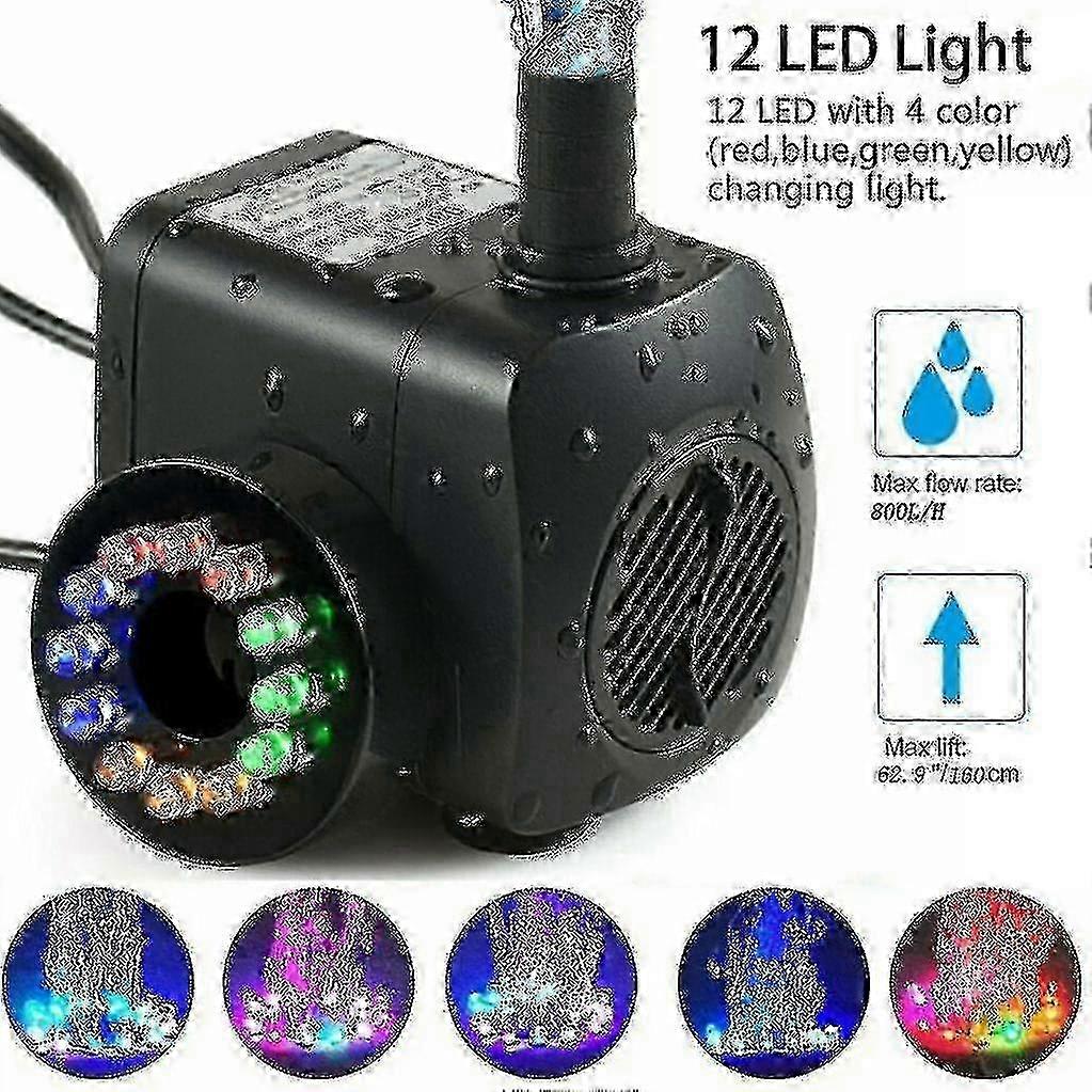 Aquarium Submersible Pump 140 GPH - Low Noise & Colorful LED Light for Decoration
