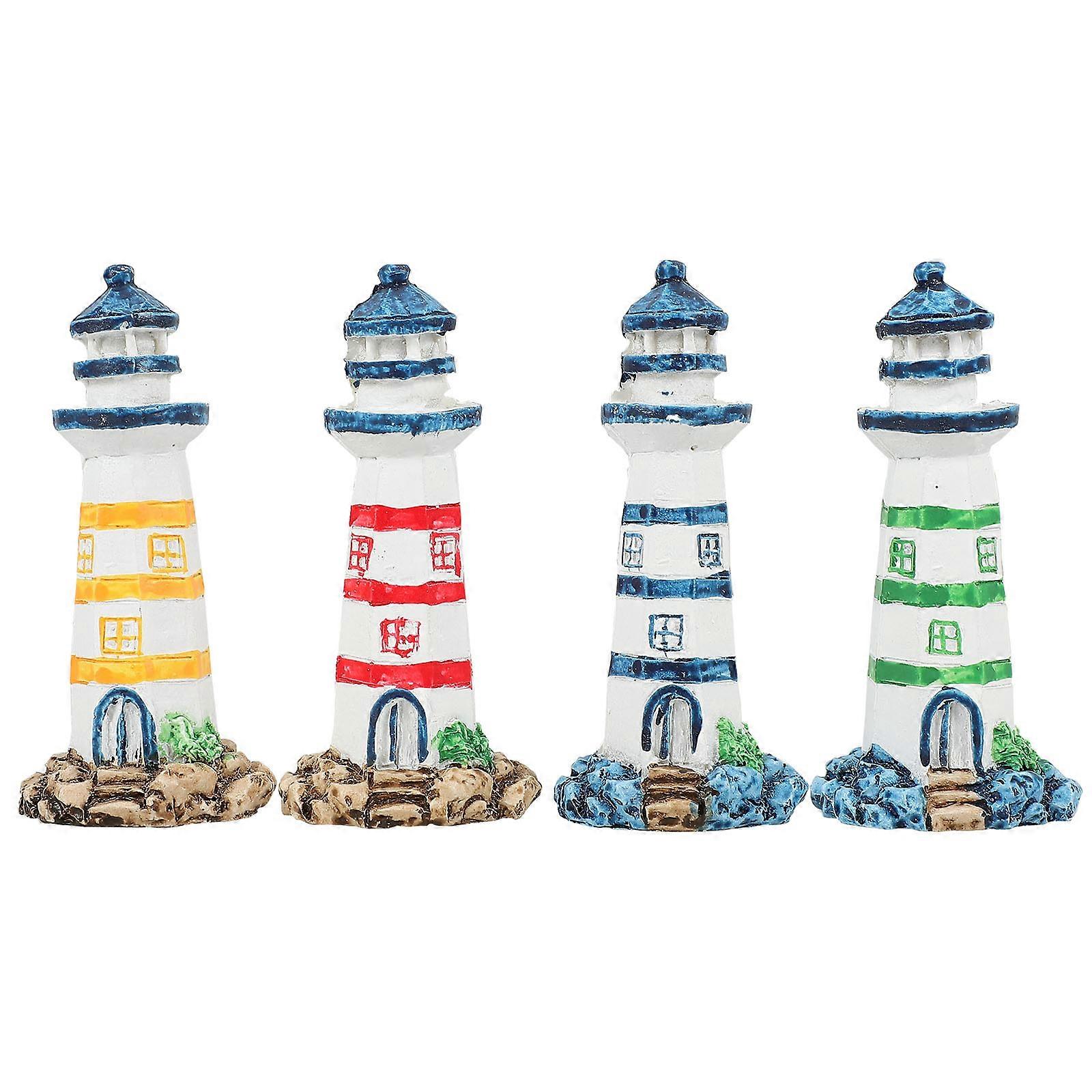 Assorted Color Miniature Lighthouse Models 4Pcs Designed For Aquarium Accessory Features Realistic Details And Resin