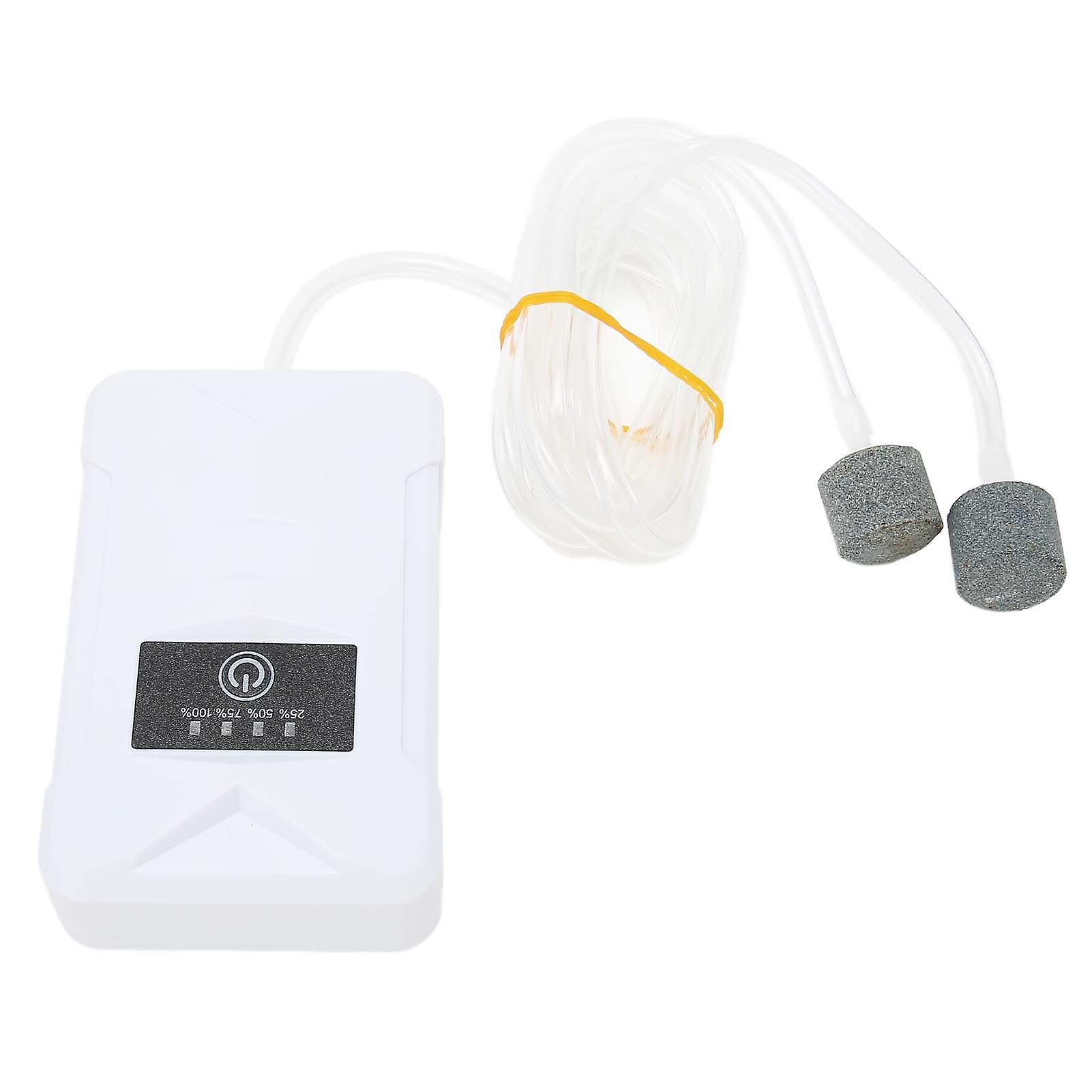 Aquarium Oxygen Pump Silent USB Rechargeable 2 Power Supply Modes Dual Outlet Portable Fish Tank Air Pump for Fishing