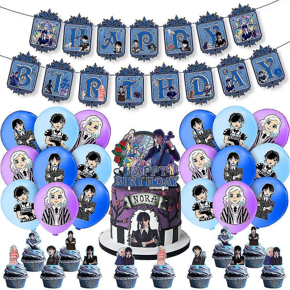 Wednesday Addams Family Theme Birthday Party Supplies Kit Banner Balloons Cake/ Cupcake Topper Decor Set