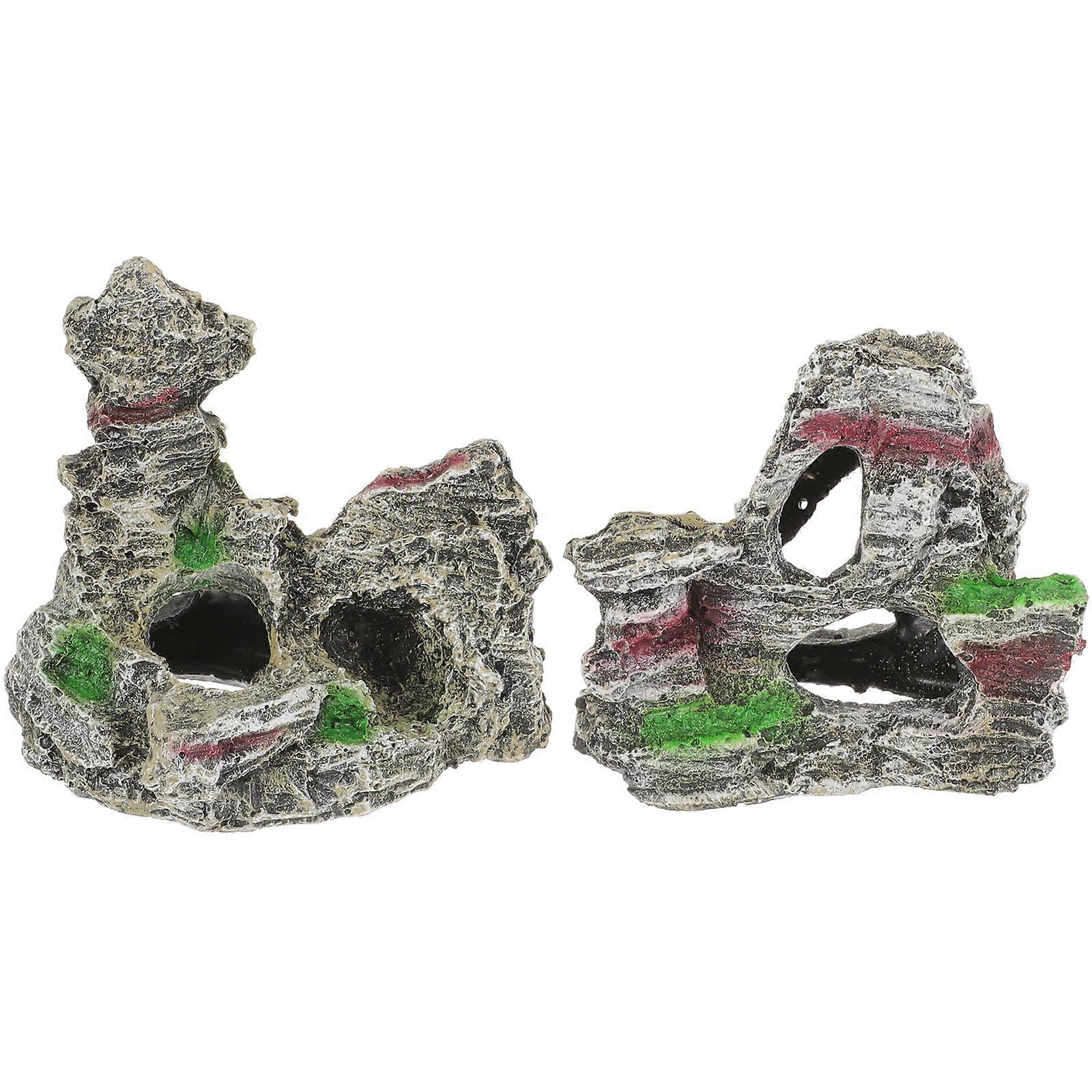Aquarium Decorative Resin Crafts with Realistic Mountain Cave Design for Fish Tank Decor 2pcs