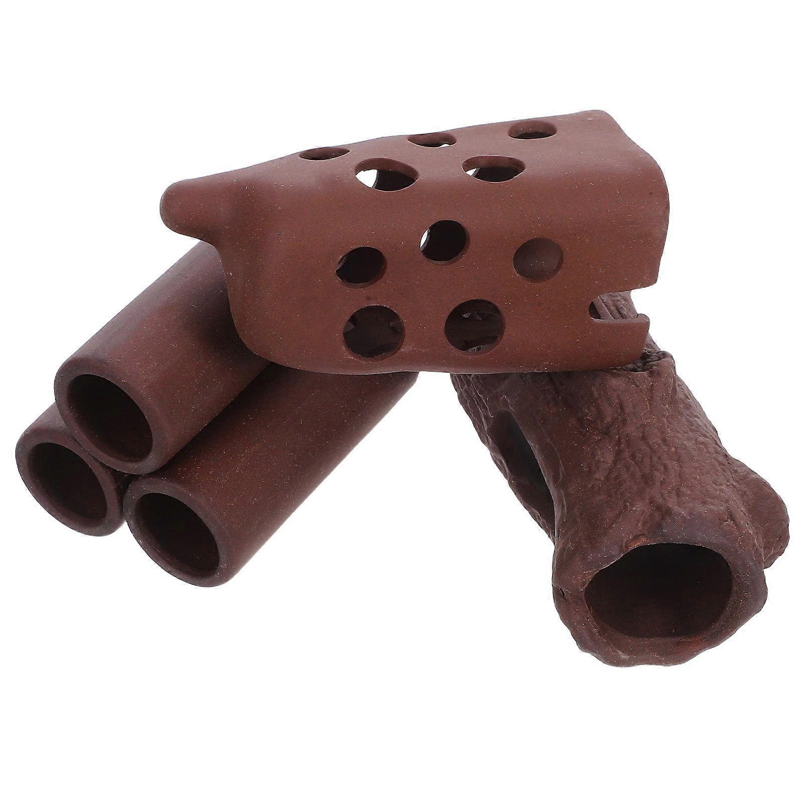 Fish Tank Decoration Cave Ceramic Aquarium Decor Asian Style Purple Sand Ceramic Hiding Breeding For Aquarium Owners 3Pcs
