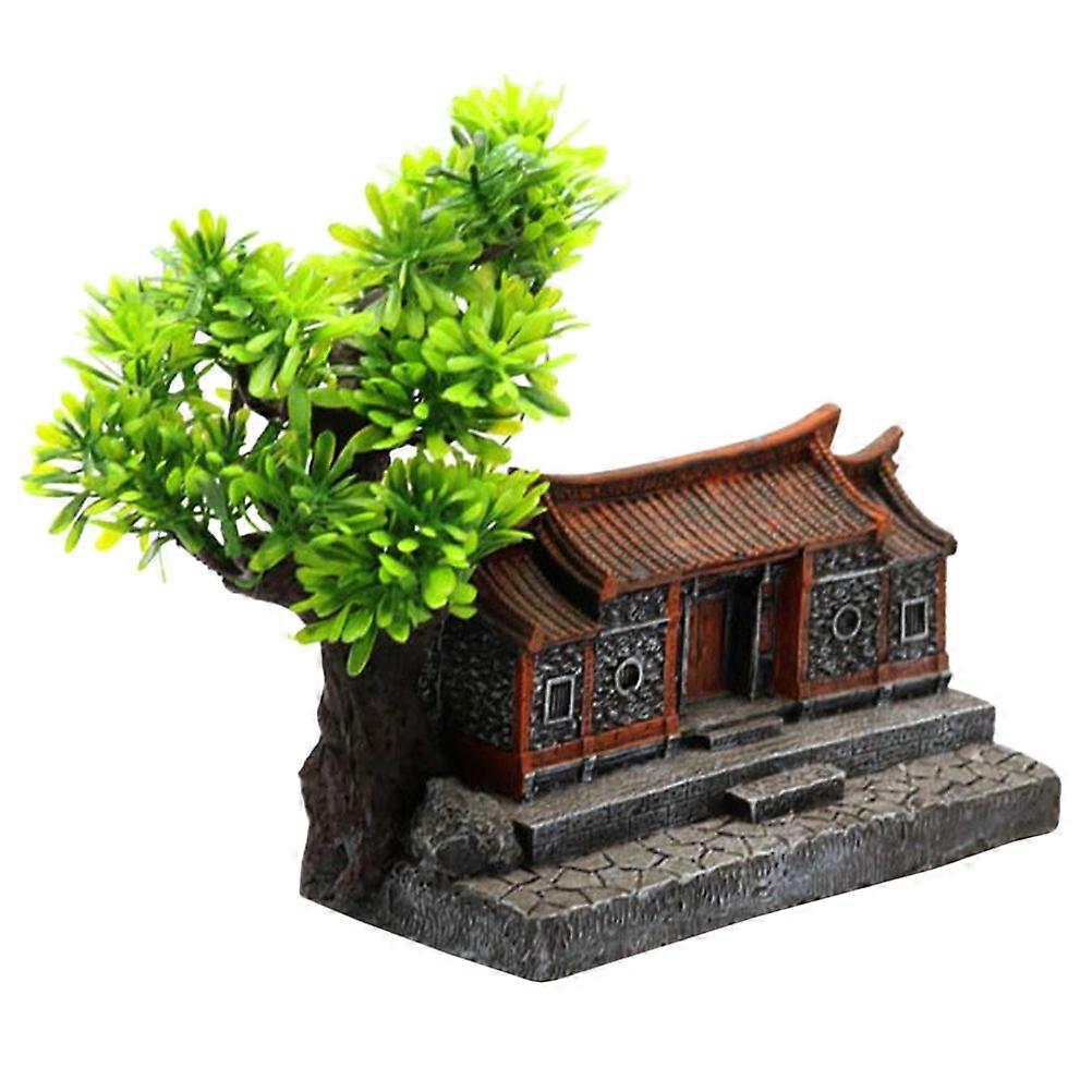 Fish Tank Accessory Resin House Chinese Style Aquarium Ornament 18x9.5x18cm 1Pack