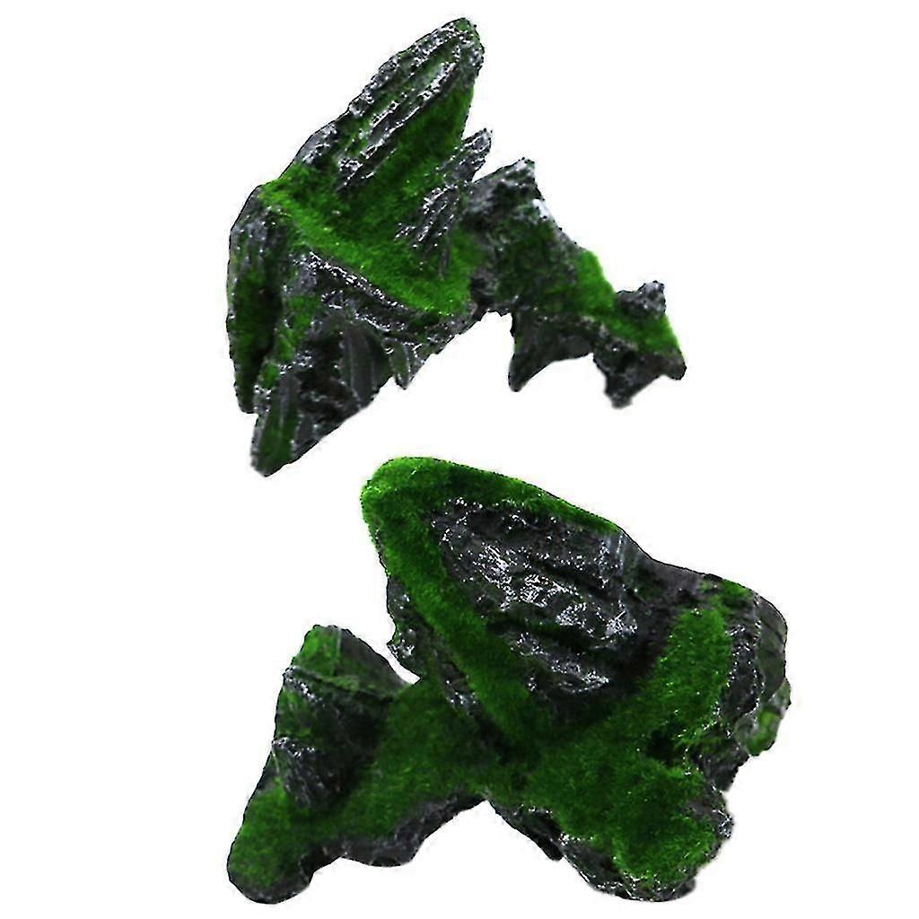Aquarium Decoration Resin Moss Mountain Fish For Tank Ornament 2 Pieces Set