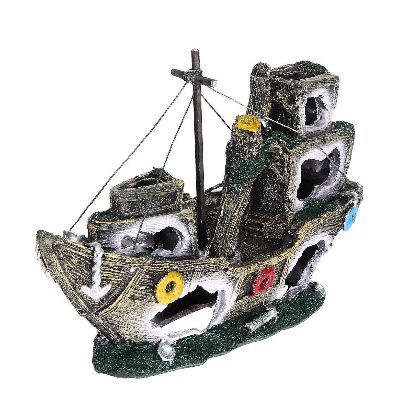 Fish Tank Ornament Resin Craft Sunken Ship Adornment Assorted Color 30x20cm Aquarium Decoration 1Pc
