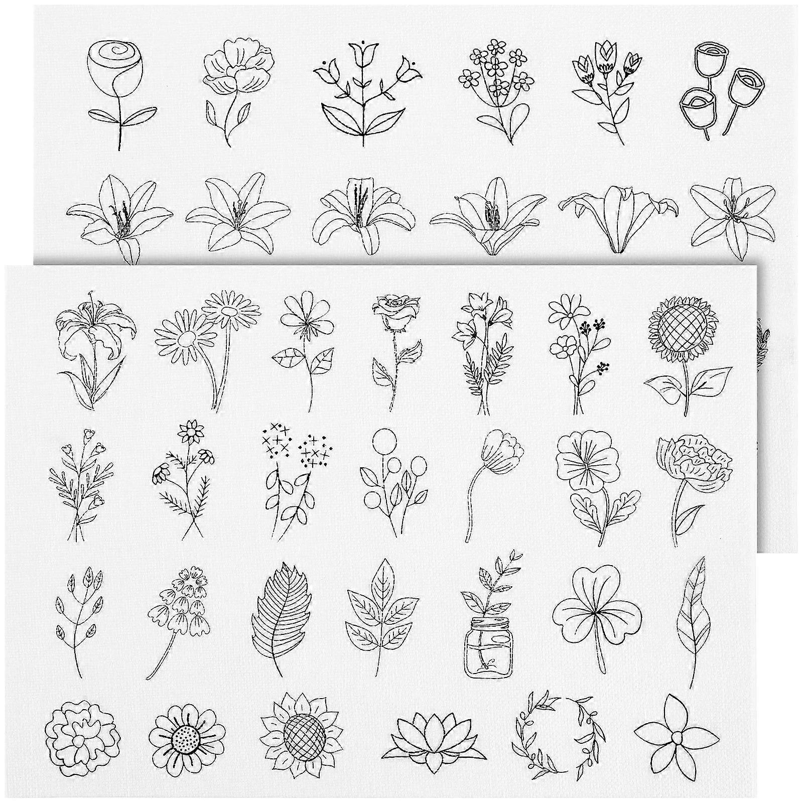 Water Soluble Embroidery Patterns 2 Sheets of Easy to Use Iron On Transfer Templates for Hand Embroidery, Dissolvable Non Woven Fabric, Beginner