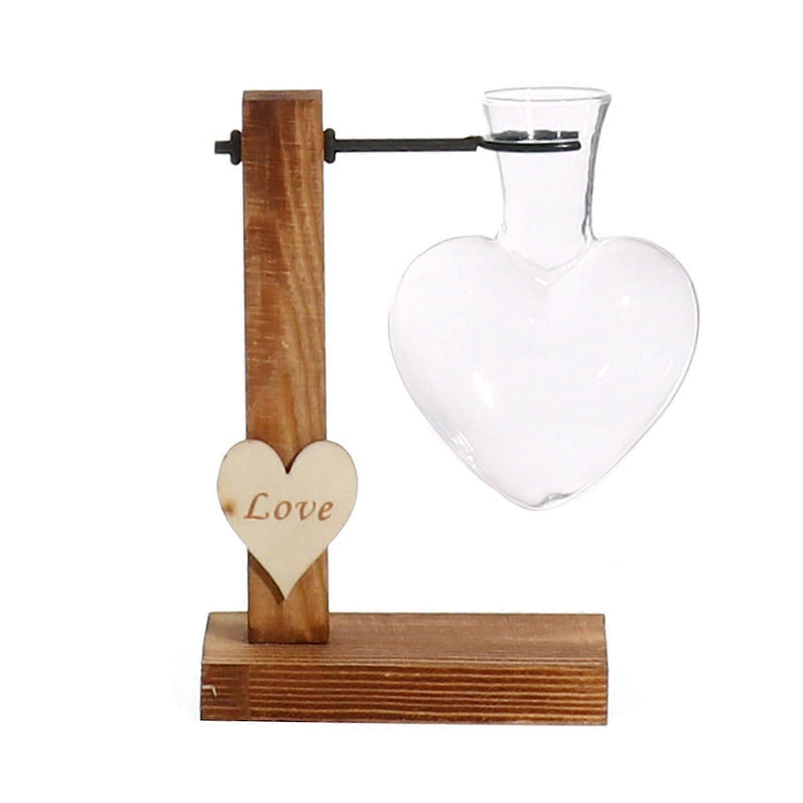 Hydroponic Glass Vase, Vintage Desktop Plant Terrarium Planter, Hydroponic Plant Pots with Retro Wooden Stand for Home Garden