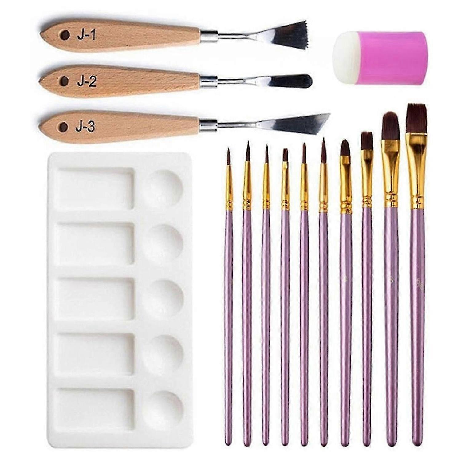 Oil Painting Tool 15-Piece Set Special-Shaped Scraper Palette Sponge Seal Wooden Tip Flat Round Water Chalk