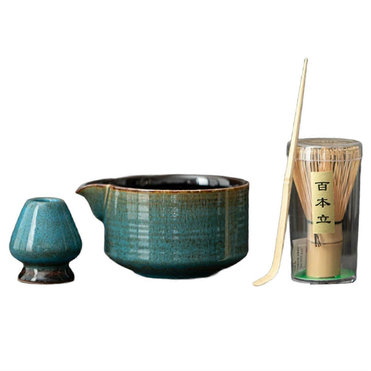 Ceramic Matcha Tea Bowl Set with Pouring Spout Ceramic Ru Kiln Tea Whisk Matcha Tea Bowl Set Tea Mak