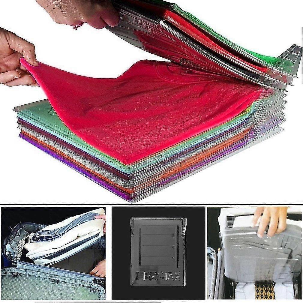 Features: 3 steps and 3 seconds can be done, even kids can do this, very easy and convenient. Like a combination expanding file folder and letter tray organizer, it makes a compact desk organizer taking up only as much room as the papers youve placed on each tidy, interlocking shelf. They make a great document organizer, file organizer, coupon organizer, bill organizer and more. Spread out and stack back up any time you like It acts as a shirt folding board and laundry sorter too. Fold right onto it, then stack and organize your whole familys laundry into neat straight piles, stacked high as you need. Simply return the empty ones to the laundry room with your dirty clothes for re-stacking Made of high quality, everlasting material, strong toughness, good ductility. s: Let you folding clothes easy A great tool provides an easy and convenient way to folding clothes. So versatile, it works in your dresser drawers, closet or shelves. Specifications: Color: transparent Material: plastic Size: 34.5*29.5*6.5cm Package included: 10 x Clothes Folding Board Notes: Please allow 0-2mm error due to manual measurement, thanks for understanding. Due to the difference between different monitors, the picture may not reflect the actual color of the item. Please understand, thank you