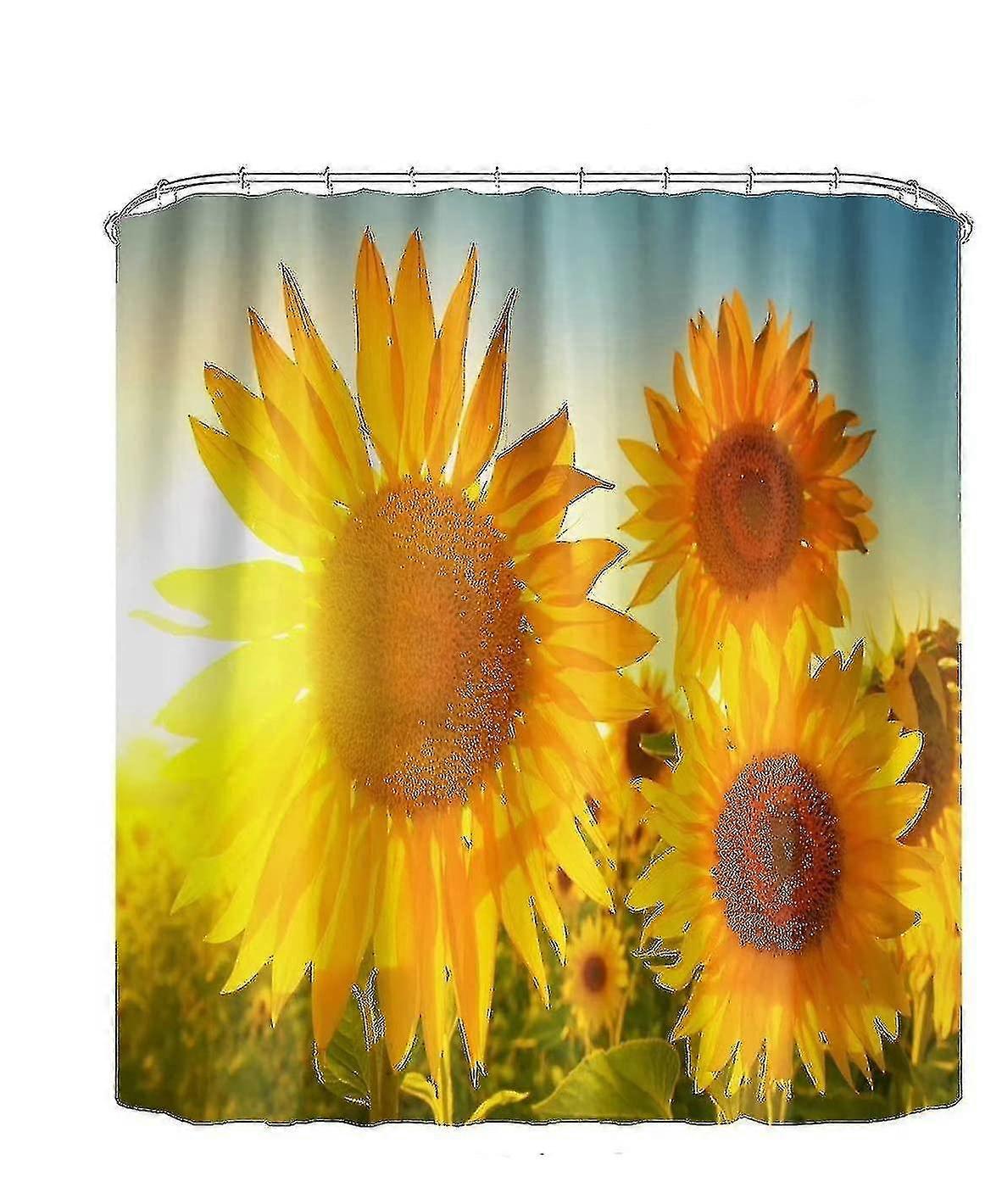 Washable Sunflower Botanical Print Bathroom Waterproof Curtain (180 X 180 Cm)