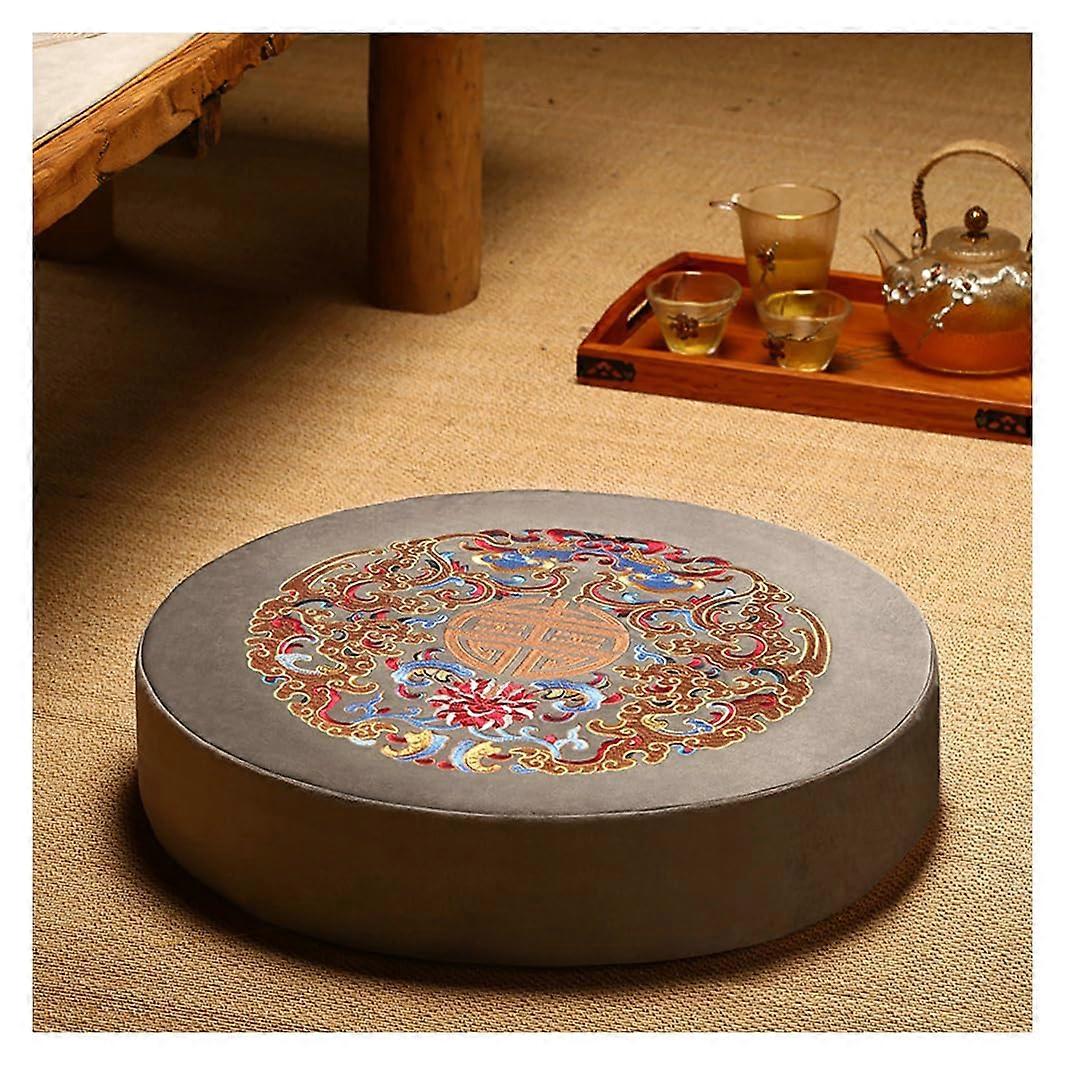 Round meditation cushion mat with washable velvet cover, thicker yoga mat thickness grey50cm