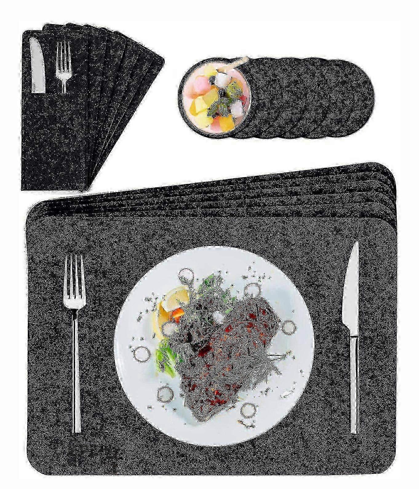 Washable Placemat Set - 6 Reusable Placemats, 6 Glass Coasters & 6 Cutlery Bags - Perfect for Dining Table Protection & Style
