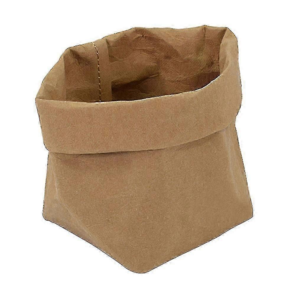 Washable Kraft Paper Container Decorative Reusable Paper Bag Organizer Flowerpot Cover Toy For Decoration And Storage Size S(light Brown)