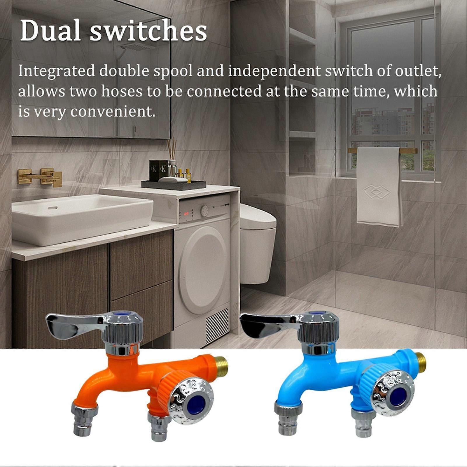 Washing Machine Faucet 1 in 2 Out Double Switch 1/2in Thread, Multifunctional Bathroom Balcony Water Tap, Easy Installation