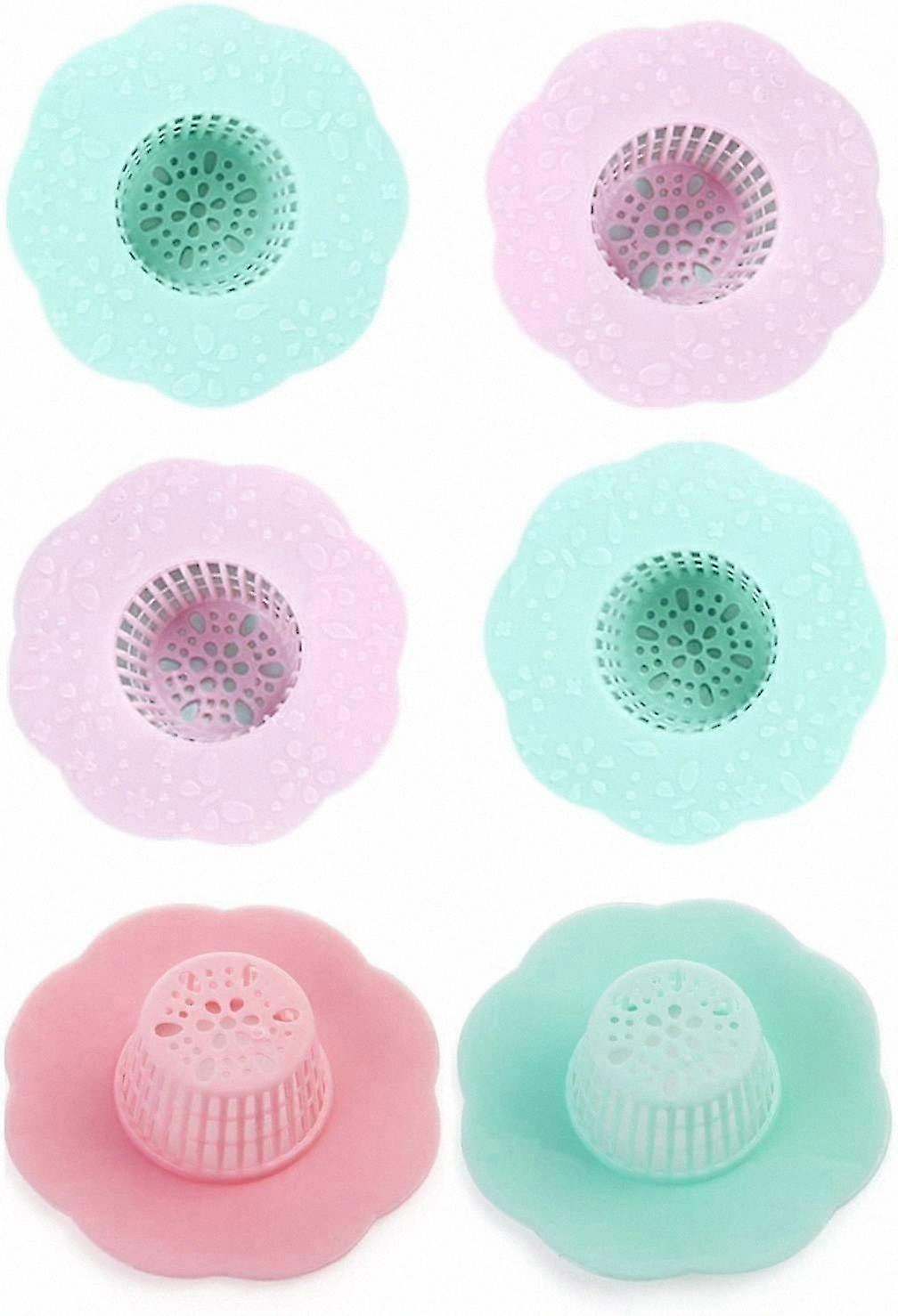 Silicone Flower Drain Protector for Washbasin, Reusable Sink Hair Catcher Filter, Anti-Clogging Sewer Strainer Snare, Pack of 6 Plastic Clog Preventio