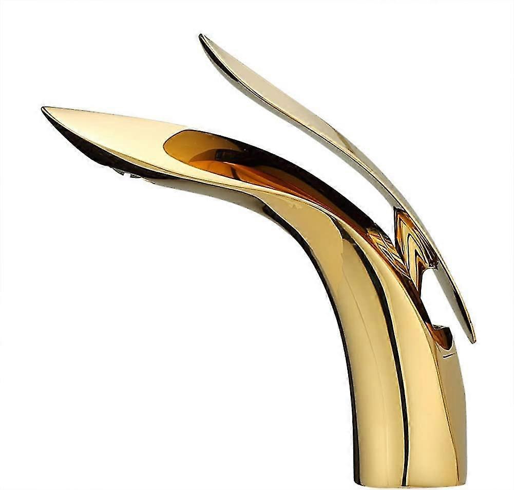 Basin Faucet Bathroom Faucet, Modern Stylish Design Brass Basin Mixer Tap Hot And Cold Water Available, Ceramic Valve, Gold