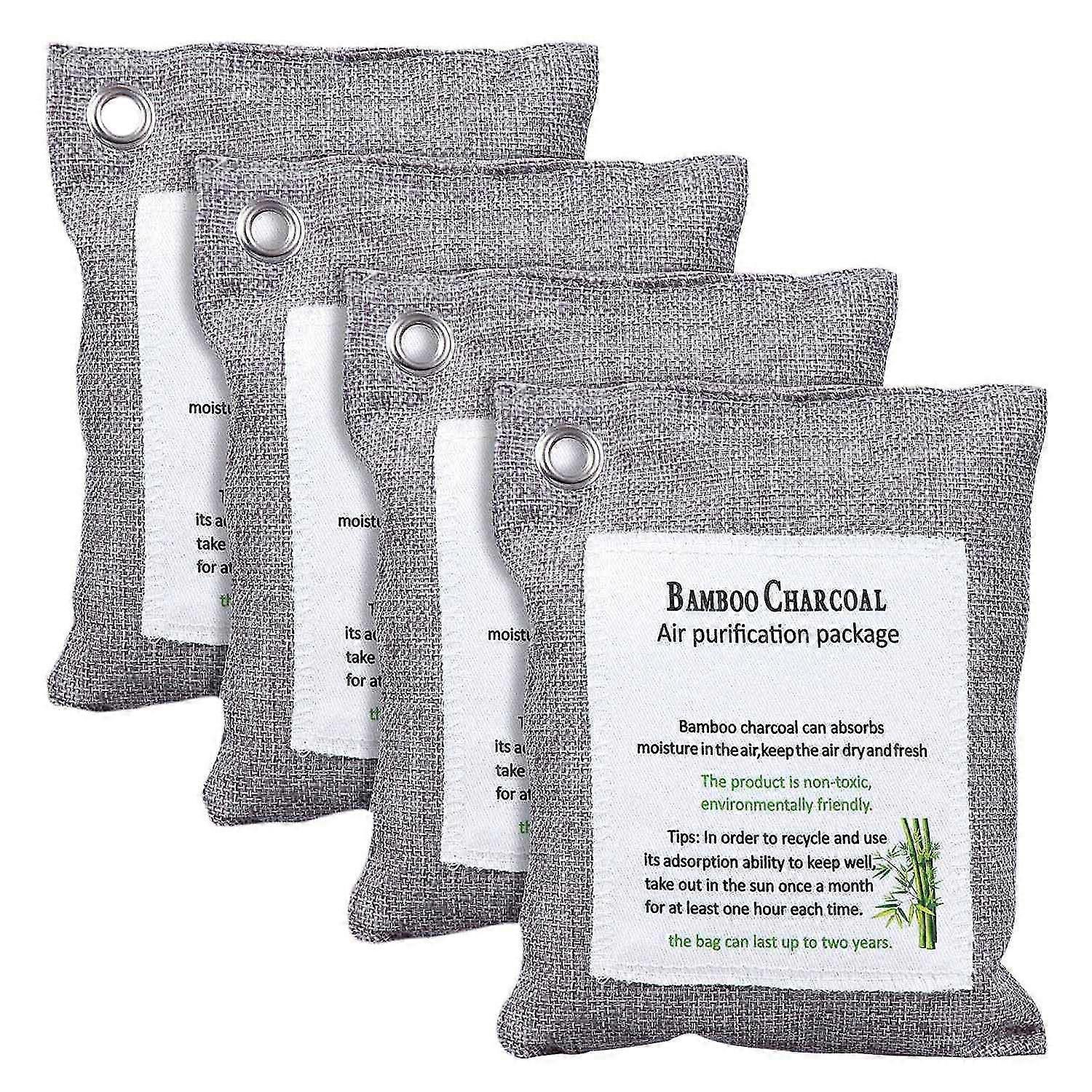 Activated Bamboo Charcoal Bag Odor Remover 200gx4, Air Purifying Bags for Home, Car, Closet, Shoes