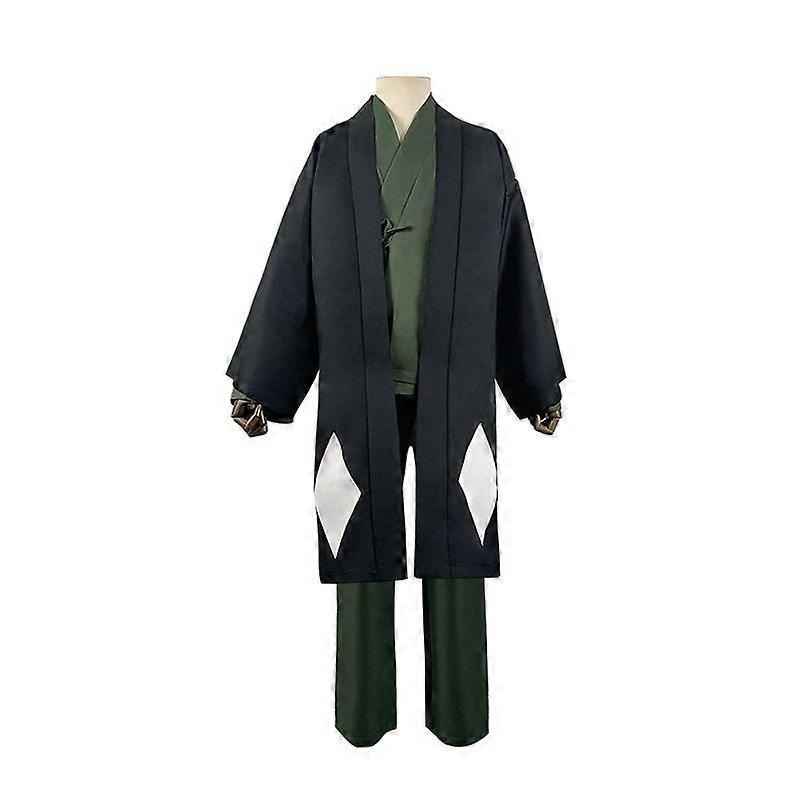 Kisuke Urahara Cosplay Costume Classic Green Kimono Set with Black Haori & Diamond Pattern Anime-Inspired Outfit for Men