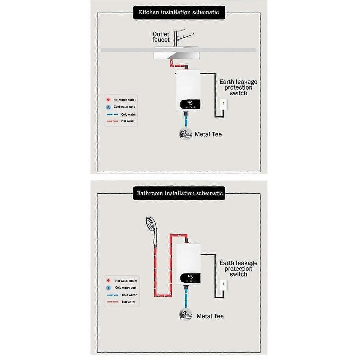 Instant Water Heater 5500W Power Portable for Bathroom, Shower and Kitchen IP4 Waterproof LCD Digit